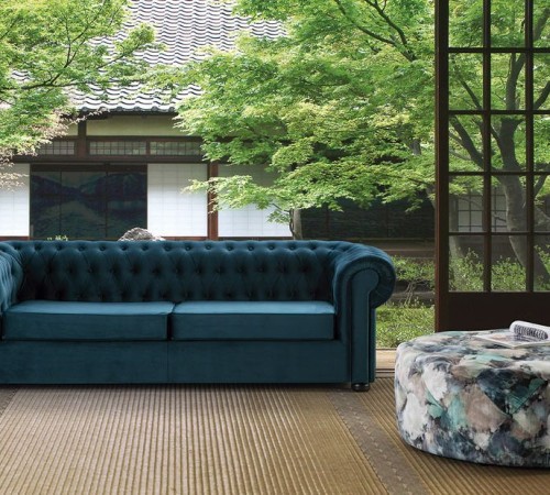 Estructura: Madera de pino macizo. Asientos: Poliuretano de 30 kg. Fijos. Patas: Madera. Desenfundable: Asientos.